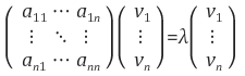 선형대수학(Linear Algebra)에서 행렬 A를 선형 변환(Linear Transformation)에 대한 결과가 자기 자신의 상수배가 되는 0이 아닌 벡터를 Eigenvector(고유벡터)라 하고 이 상수배 값을 Eigenvalue(고유값)이라고 한다. n x n의 정방 행렬(Square Matrix) A에 대해 Av = λv를 만족하는 0이 아닌 열 벡터(Row vector) v를 Eigenvector라 하고, 상수 λ를 Eigenvalue라 한다. (Eigenvector와 Eigenvalue는 Square Matrix에서만 정의되고, λ 기호는 Linear Algebra에서 Eigenvalue를 나타낼 때 사용하는 기호다.) 즉, v는 행렬 A의 Eigenvector, λ는 행렬 A의 Eigenvalue다.