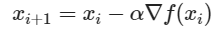 Gradient Descent의 일반적인 식은 아래와 같다. 현재 좌표(x_i)와 현재 좌표에서 기울기(∇f(x_i))에 Leaning Late(학습률) a을 곱한 값을 빼 다음 좌표(x_(i+1))을 구한다. 이 구해지는 다음 좌표가 앞서 말한 parameter update, 즉 업데이트 된 파라미터고 이를 반복해 0에 가까운 지점을 찾아간다.